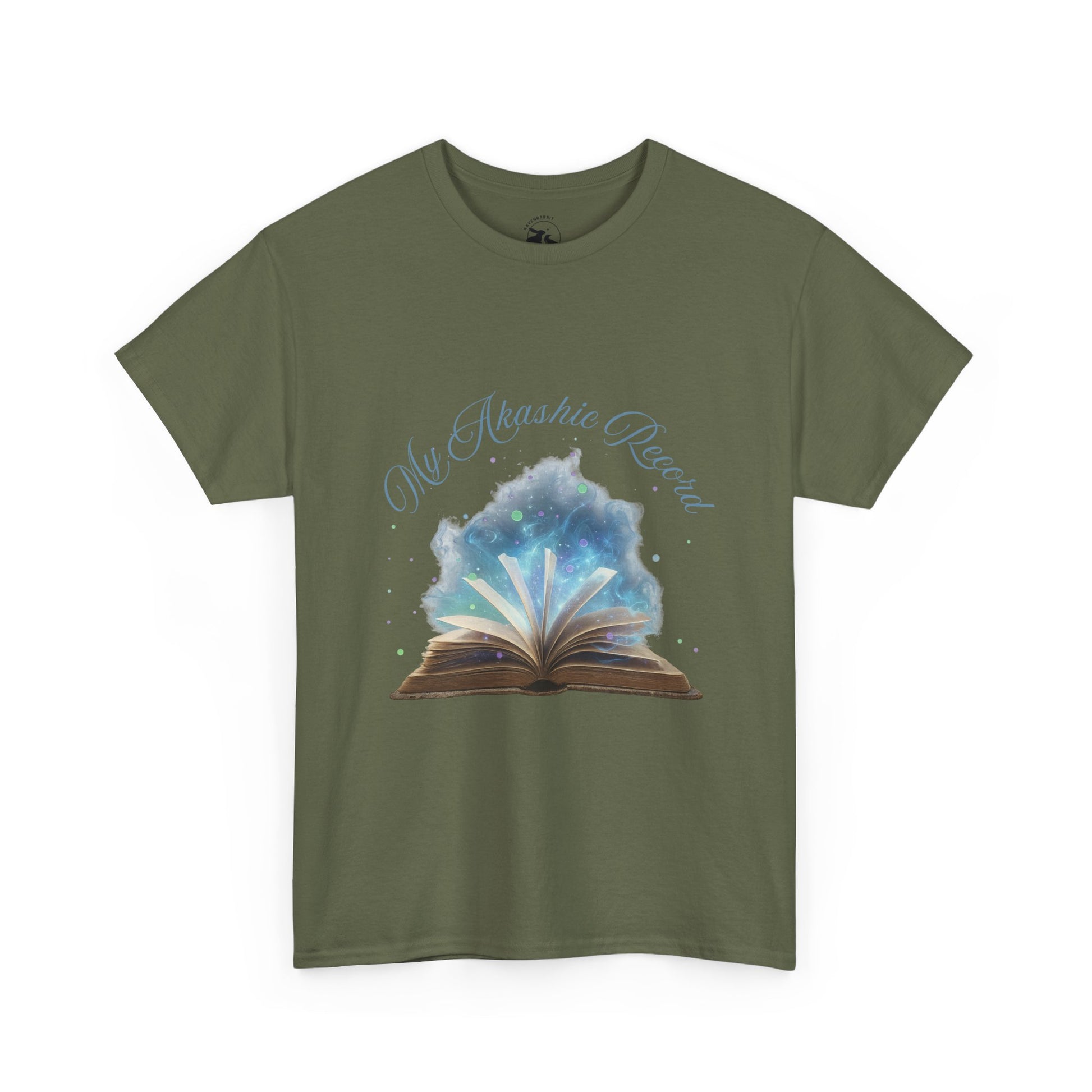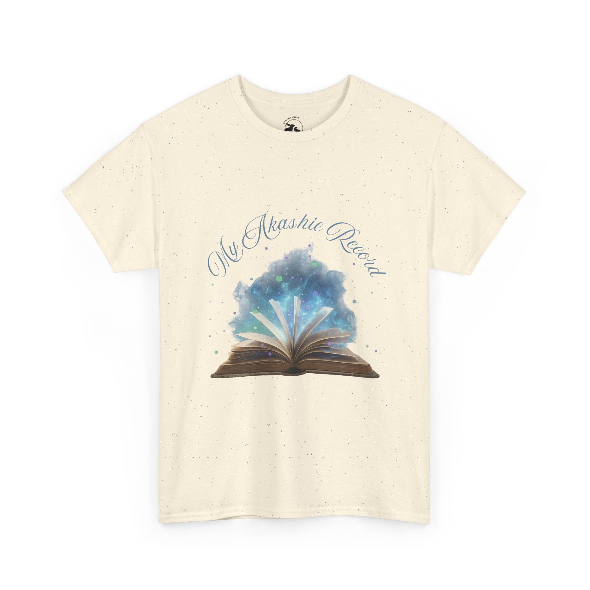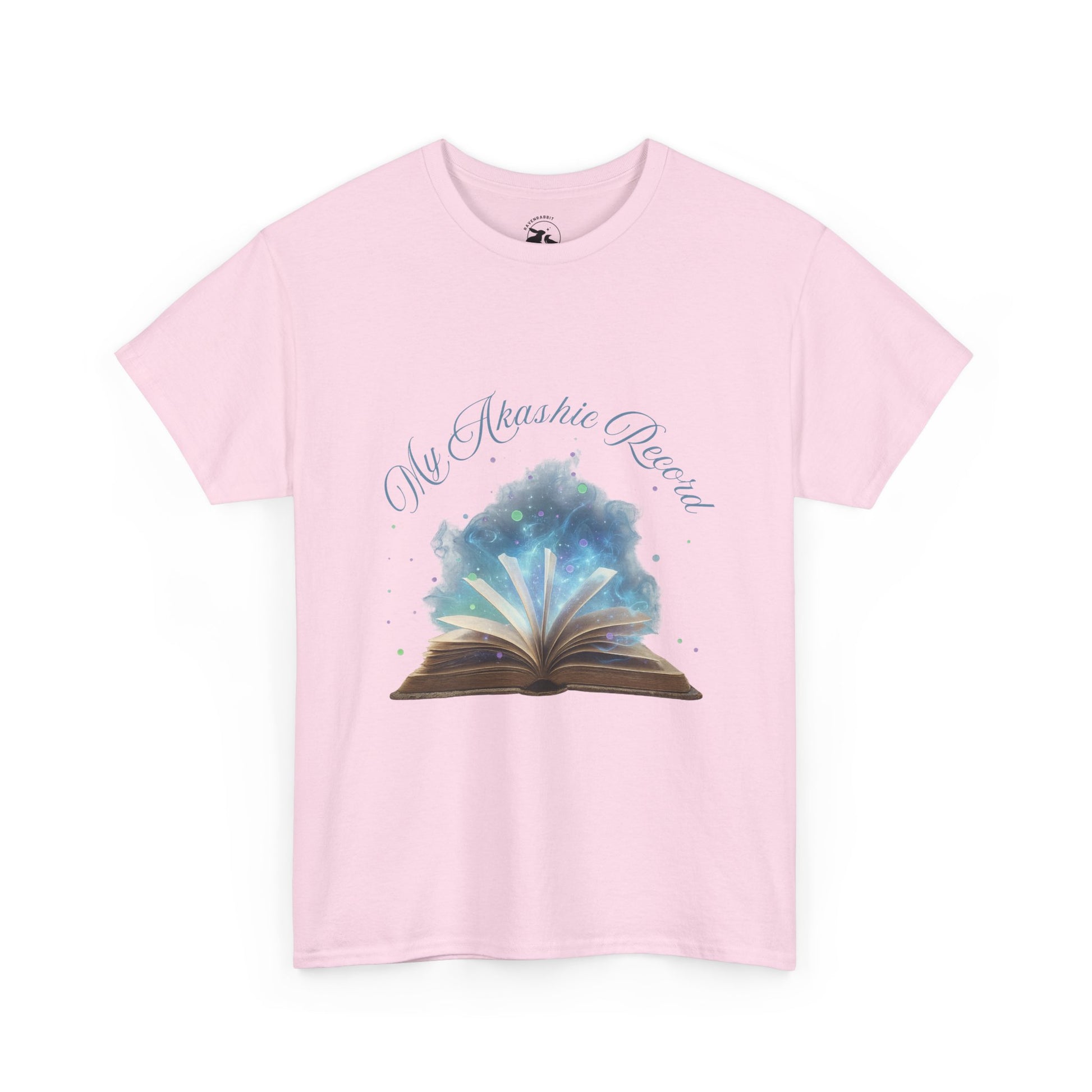✨ This Akashic Record Tee carries the energy of remembrance and inner wisdom. The front artwork features an ancient open book releasing a swirl of light and cosmic color, symbolizing the moment your soul reconnects with its own deeper knowing. The words My Akashic Record flow gently above it, honoring the sacred space within you where truth is stored.