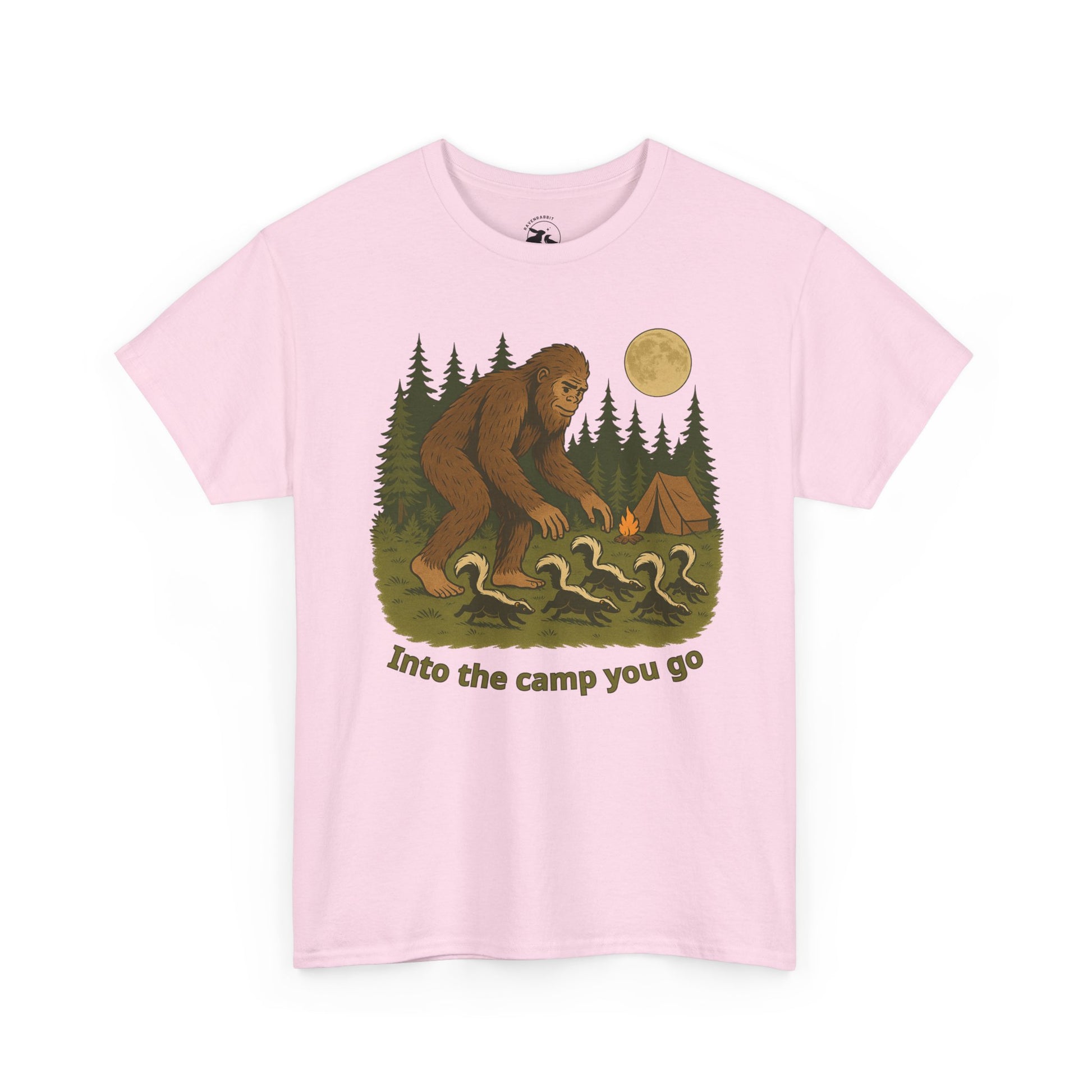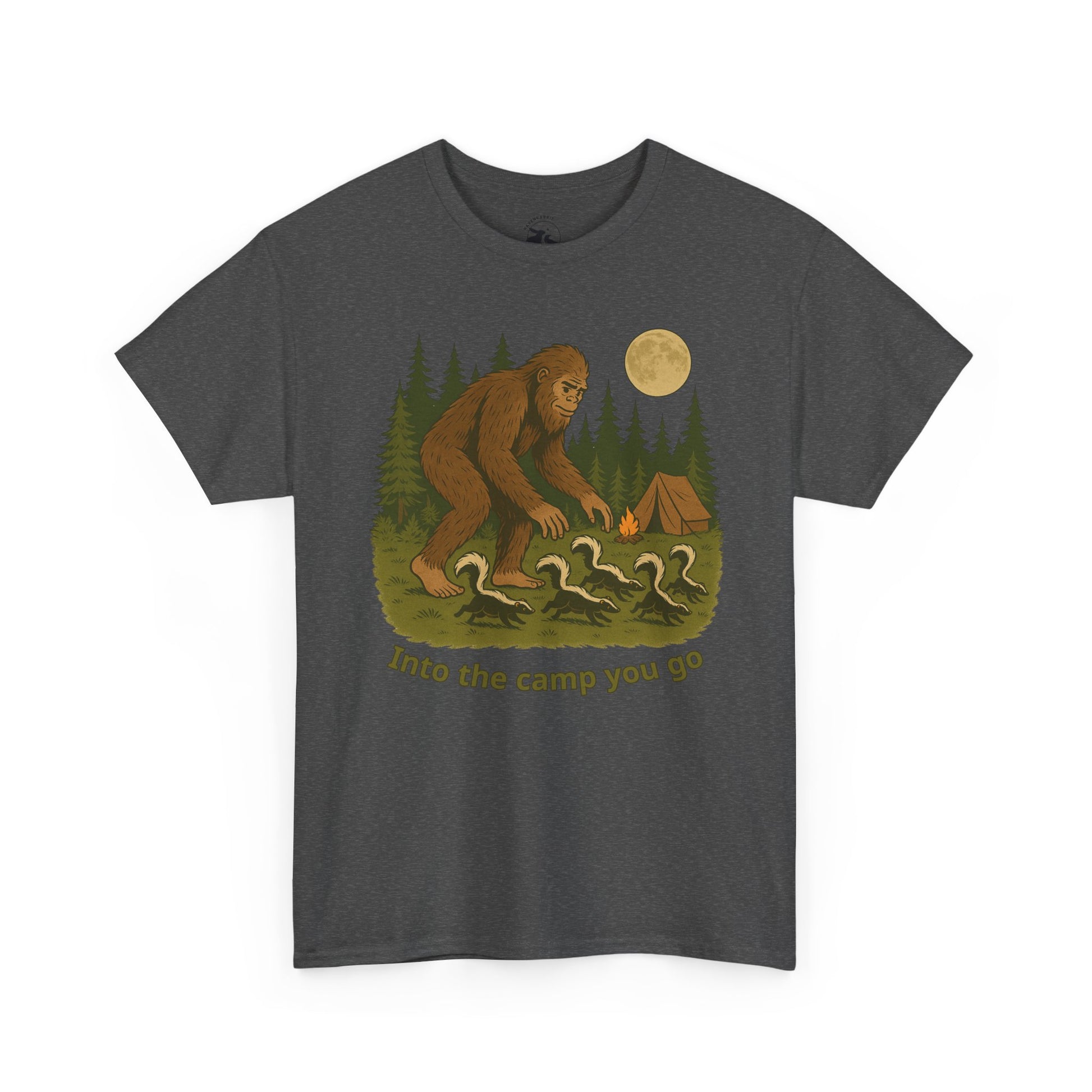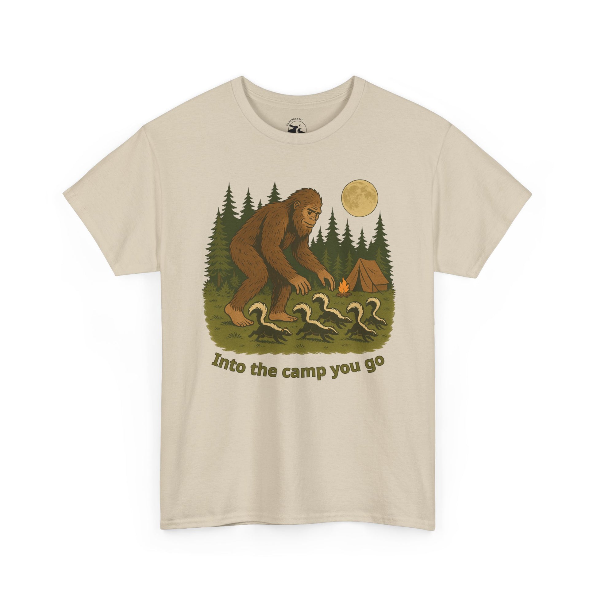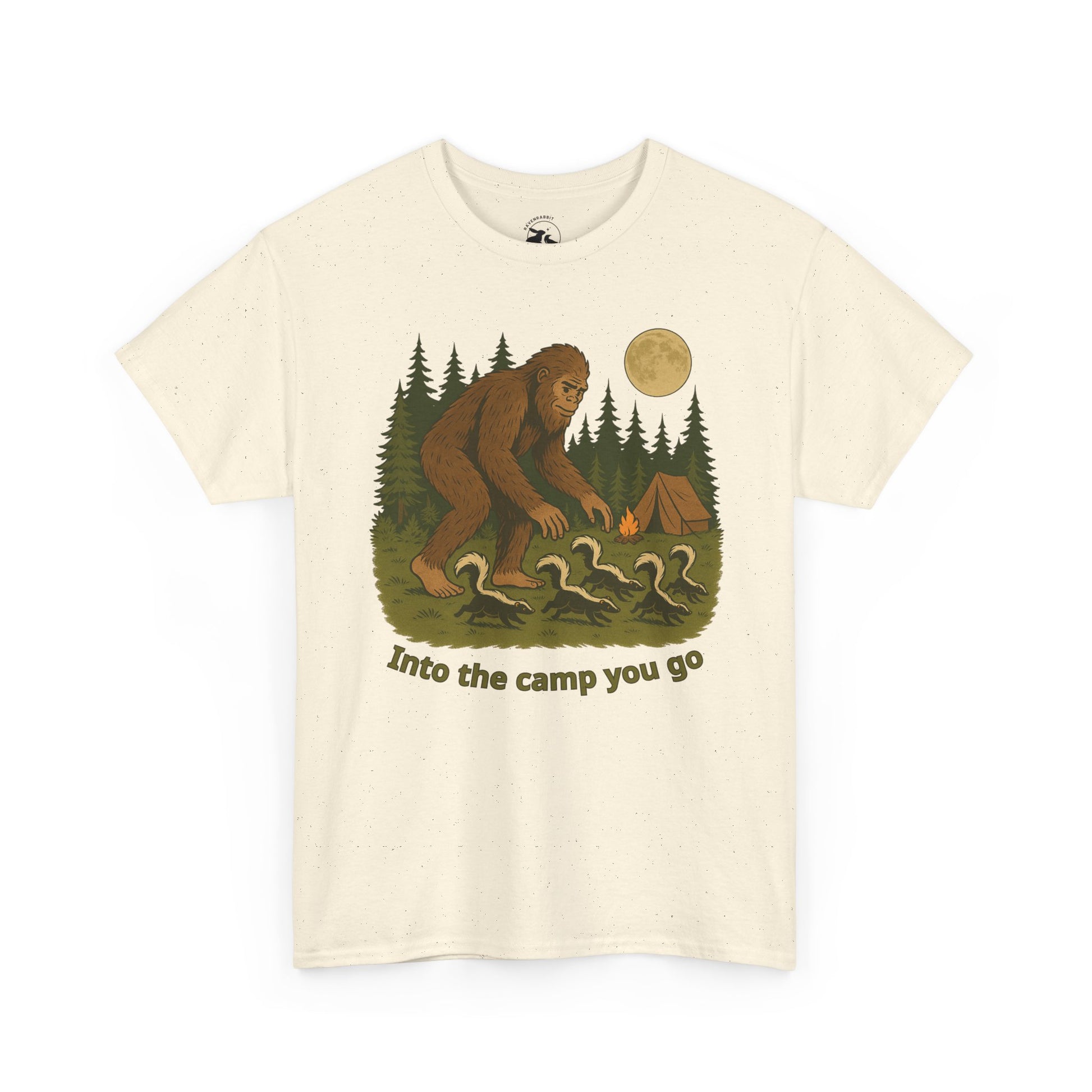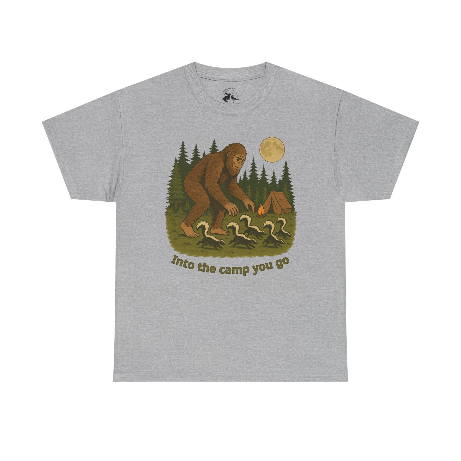 Bring some laughter to your wardrobe with this playful Bigfoot design. Inspired by campfire stories and late night adventures, this shirt features Bigfoot herding a mischievous group of skunks straight into a campsite under the glow of a full moon. The vintage style illustration captures both the humor and mystery of the wilderness, making it a perfect choice for campers, adventurers, and cryptid fans alike. Whether you love Sasquatch lore, enjoy clever outdoor humor, or just want a conversation starter, this tee is designed to stand out on any adventure.