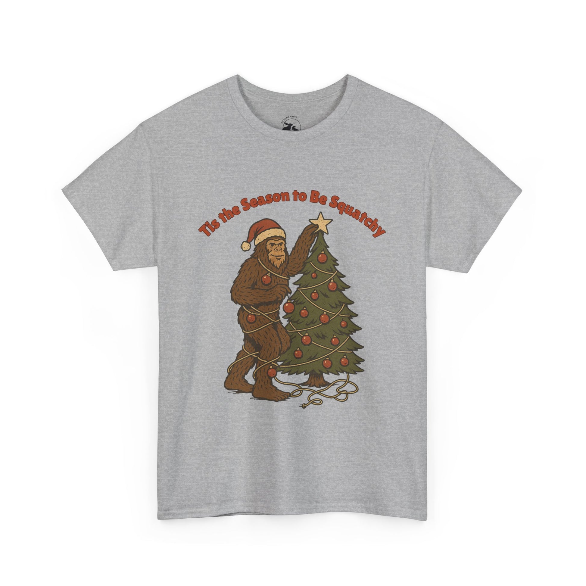 Sasquatch Decorating the Tree Tee – Bigfoot Christmas Spirit Shirt